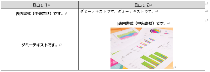 ※ 表内では「図中央寄せ」スタイルが有効にならないため
