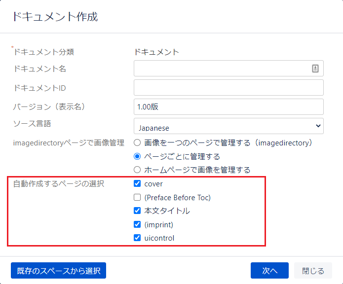 新規でドキュメントを作成するときに、自動で作成するページを設定する事ができます。