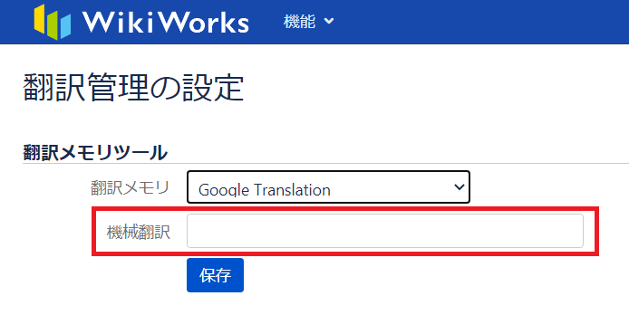 機械翻訳を使用するためのキーの入力が必要です。入力後は「保存」ボタンをクリックして内容を保存して下さい。