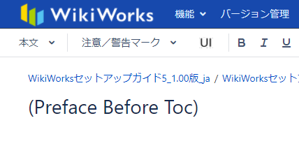 「(Preface Before Toc)」ページ内のコンテンツは出力対象外のため、入力してもWordエクスポート時のWordファイルには反映されません。