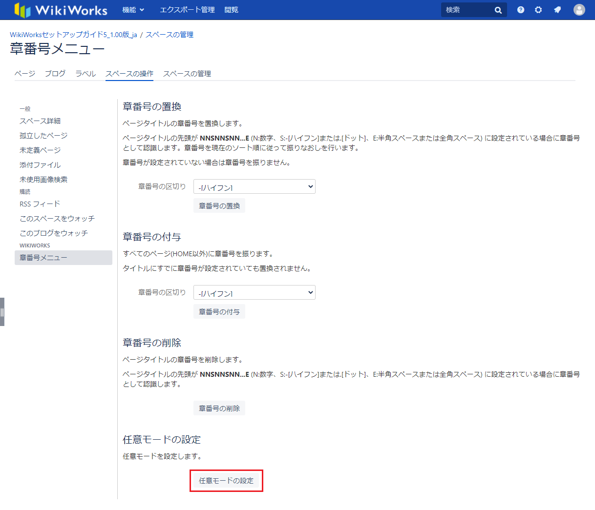 [章番号メニュー]画面が表示されます。 - [任意モードの設定]をクリックします。