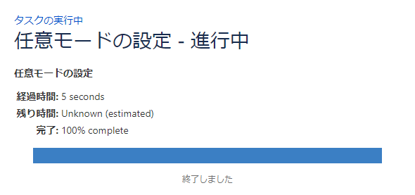完了すると、終了メッセージが表示されます。