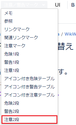 - 注意/警告スタイルを挿入したい箇所にカーソルを配置します。
