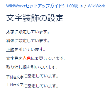 編集画面および閲覧画面で、選択した文字列の表示が装飾に応じて変化します。