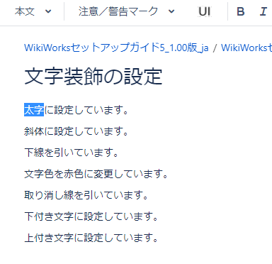 入力した文字列には、任意の文字装飾を設定することができます。これら文字装飾は、Wordエクスポート時のWordファイルの文字装飾と紐付けられます。