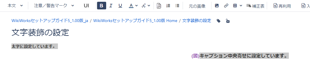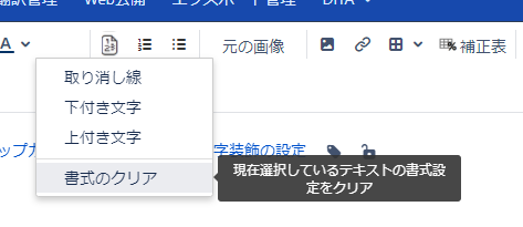 編集画面および閲覧画面で、選択した文字列のスタイルおよび装飾が削除されます。