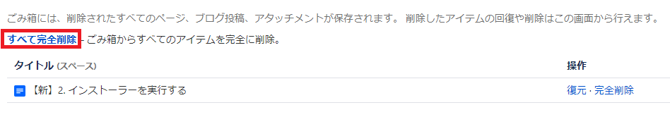 ▷Confluence サポート「ごみ箱を空にする (ページの完全削除)」