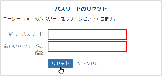 クリックすると、Webブラウザで[パスワードのリセット]画面が表示されます。 - 新しいパスワードを設定して、[リセット]をクリックします。