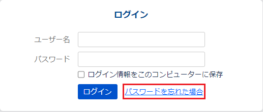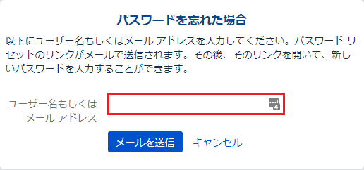 [パスワードを忘れた場合]画面が表示されます。 - パスワードをリセットする「ユーザー名もしくはメールアドレス」を入力します。