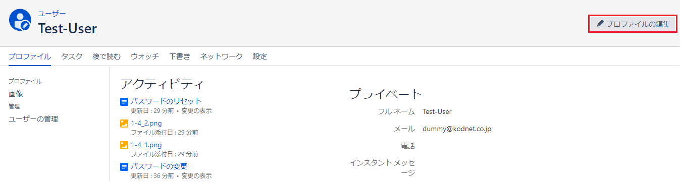 ▷Confluence サポート「ユーザープロファイルを編集する」