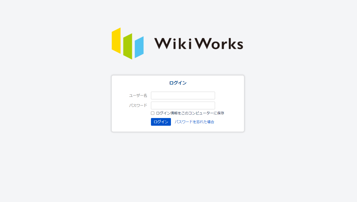 WikiWorksにログインするには、あらかじめ設定されたユーザー名とパスワードを入力します。