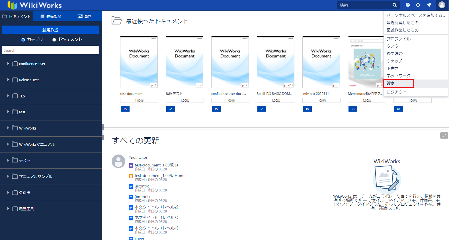 Unable to render {include} The included page could not be found.管理者権限をもったユーザーがログインした場合は、[設定]ボタンも表示されます。
