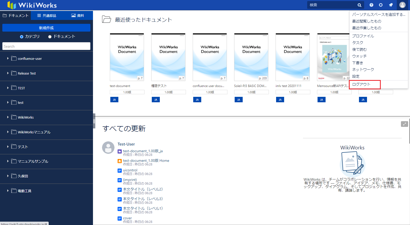 WikiWorksからログアウトします。