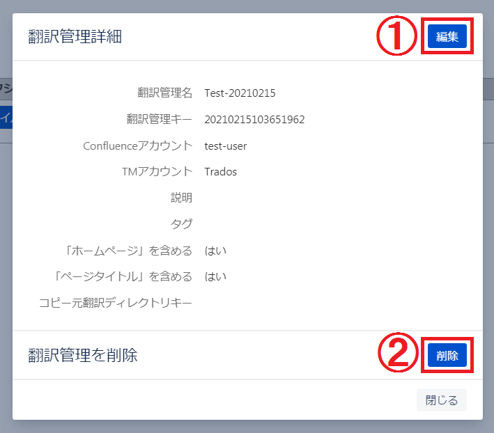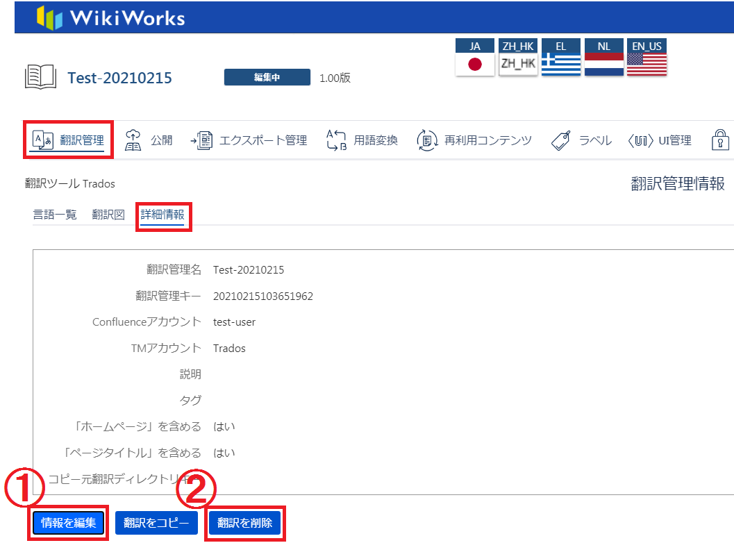 2.「翻訳管理詳細」画面が表示されます。