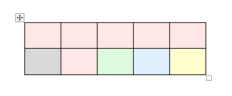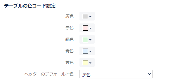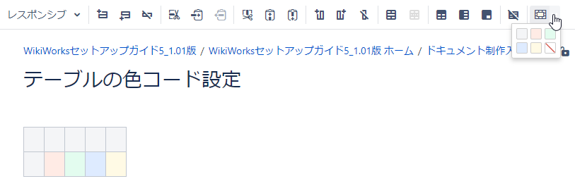 ●wikiworks上はテーブルについて五つの色が選択できます(灰色、赤色、緑色、青色、黄色)
