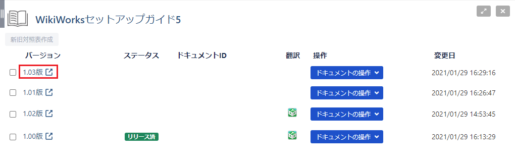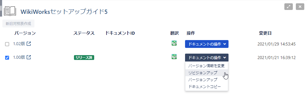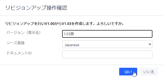 - リビジョンアップされたドキュメントが作成されます。