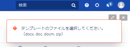 表示されたファイル選択ウィンドウで、作成したテンプレートファイルを選択します。Unable to render {include} The included page could not be found.選択できるファイル形式は、「.docx」と「.zip」のみです。