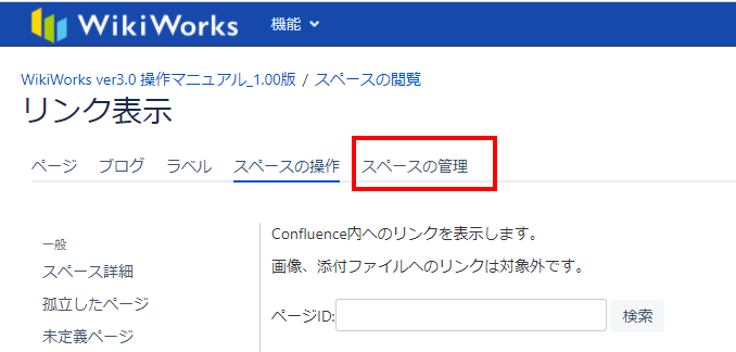 [リンク表示]画面が表示されます。 - [スペース管理]タブをクリックします。