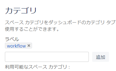 ワークフロー機能を使用するためには、ダッシュボード内の「ワークフロー」から「ワークフロー機能」を有効化する、もしくはスペースに「workflow」カテゴリ(ラベル)を設定して機能を有効化します。