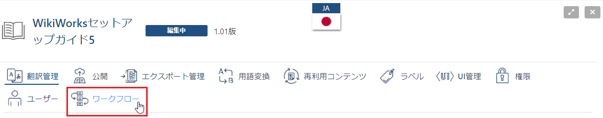 - 画面右上にメッセージが表示され、ワークフロー機能が有効化されます。