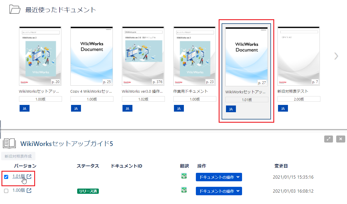 - トップページからワークフローを設定したいスペースを選択し、該当のバージョンにチェックを入れクリックします。