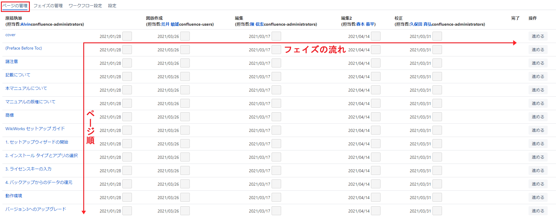 Unable to render {include} The included page could not be found.ワークフローを新たに設定した場合は、すべてのページが最初のフェイズに位置づけられます。 Unable to render {include} The included page could not be found.フェイズが作成されていない場合、[ページの管理]タブやホームページで次のメッセージが表示されます。