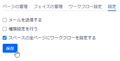 [設定]画面が表示されます。 - [スペースの全ページにワークフローを設定する]にチェックを入れます。