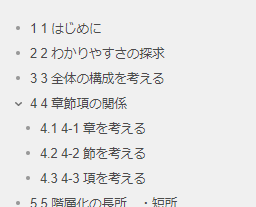 下の図のように章番号が付与されます。