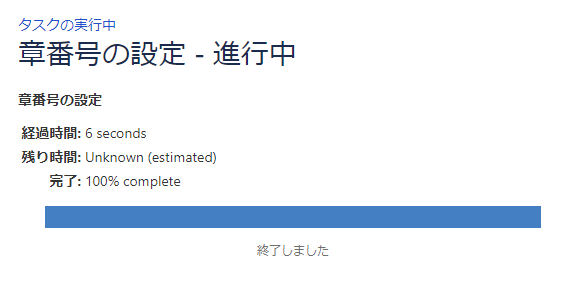 章番号の付与が実行され、完了すると終了メッセージが表示されます。
