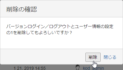 クリックすると、該当のバージョンが削除されます。