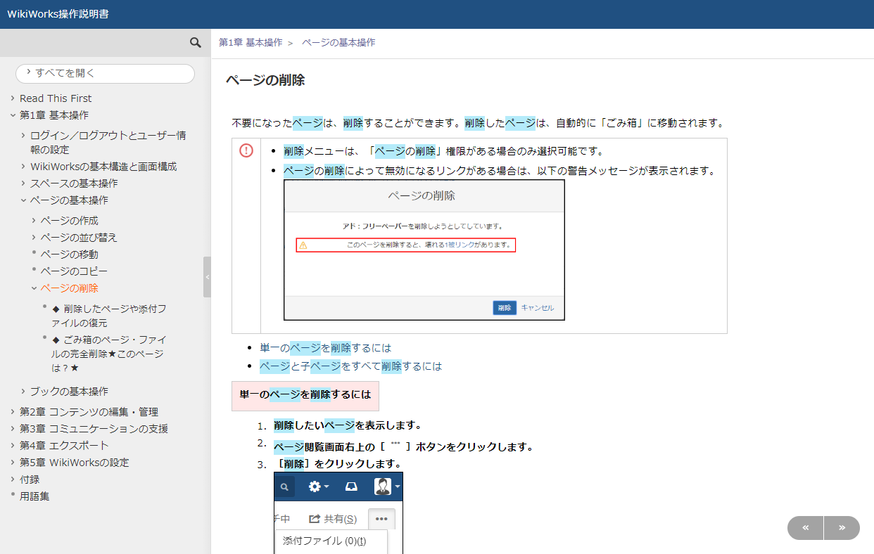 - ページタイトルをクリックすると、該当するページに移動します。