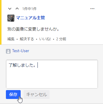 返信のコメントを入力して、[保存]をクリックします。