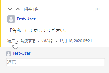 公開されているインラインコメントには、個々のインラインコメントに対して返信や編集などのリアクションを実行できます。