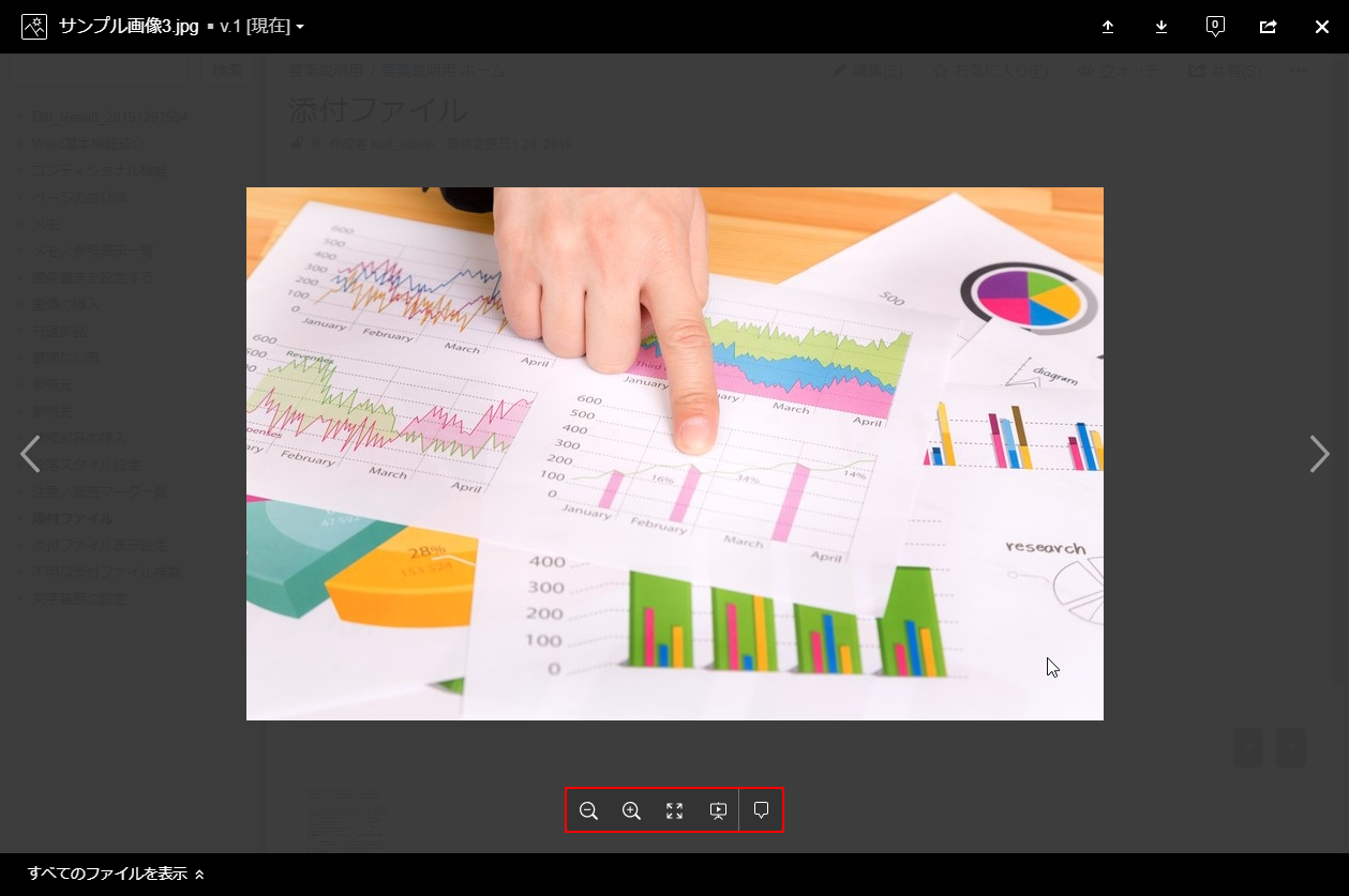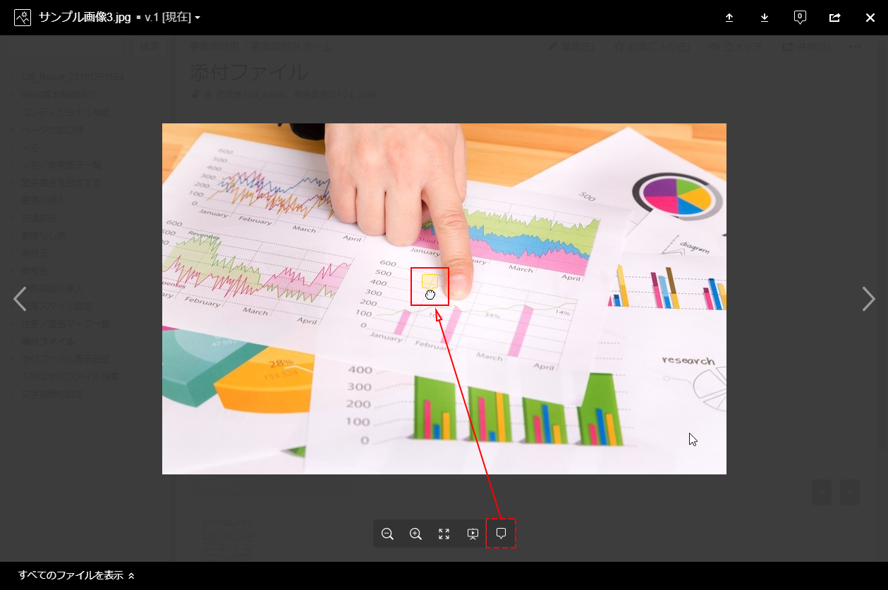 画像などの添付ファイルには、プレビュー画面のメニューを使用して、コメントを配置できます。