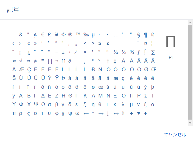 下記のウィンドウが表示されますので、使用したい記号をクリックします。