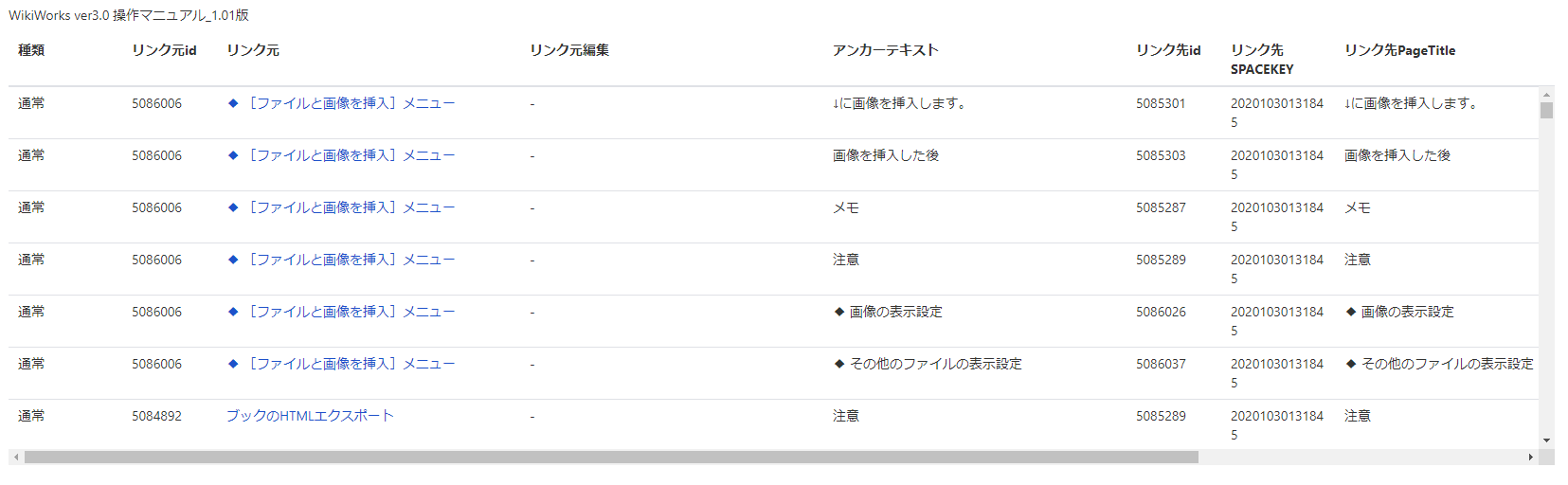 | リンク元id | - | リンクが存在しているページIDが表示されます。 |