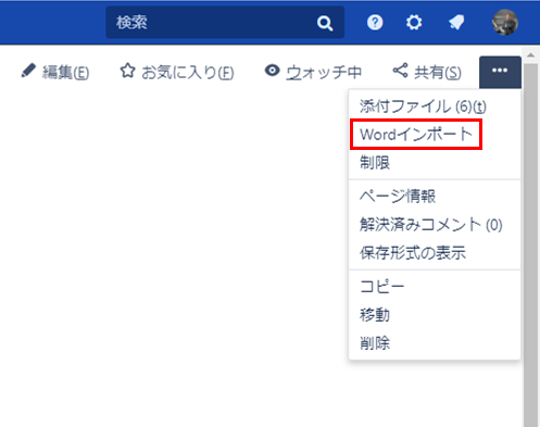 - 閲覧画面の「・・・」内の「Wordインポート」を選択します。