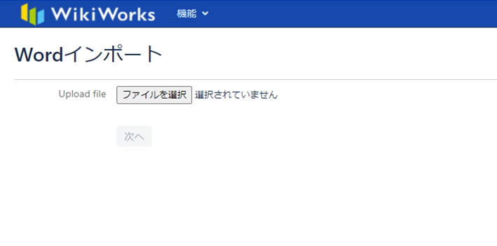 - 「ファイルを選択」からインポートしたいWordファイルを選択し、「次へ」を選択します。
