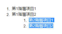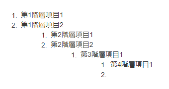 - 複数階層の「番号付箇条書き」または「箇条書き」を設定します。