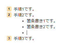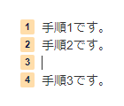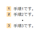 行頭の手順番号が、[箇条書き]の[・]に替わります。