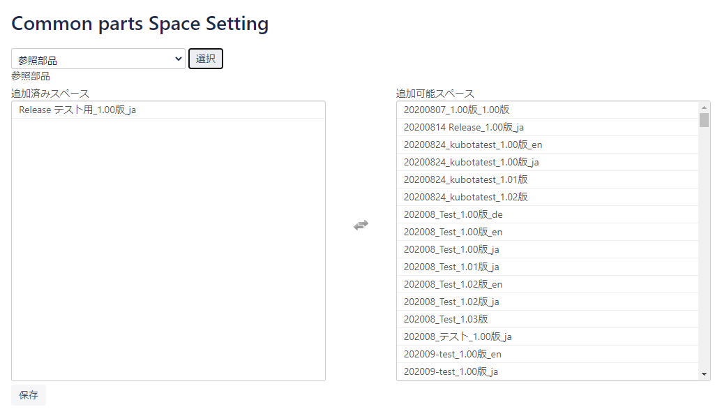 Unable to render {include} The included page could not be found.左側のリストでスペースをクリックすると、登録が解除されて右側のリストに移動します。 [保存]をクリックします。