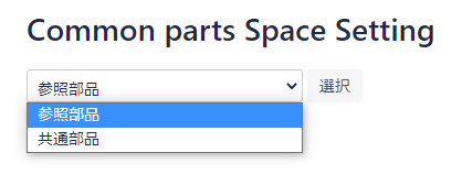 [共通/参照 部品用スペース設定]画面が表示されます。 - プルダウンメニューで[参照部品][共通部品]のいずれかを選択して、[選択]をクリックします。