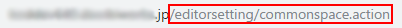 - Webブラウザのアドレスバーで、ドメイン名の後ろに「/editorsetting/commonspace.action」と入力します。